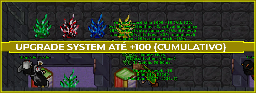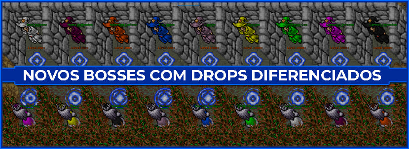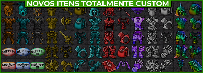 PvP ou No-PvP?O conteúdo do servidor em si é no-pvp, porém todo dia tem castle às 20:00 e também há hunts com pvp liberado!! Outfits e Mounts com Buffs (Farmáveis)!Tier 1, 2 e 3 contam com 42 outfits e mounts em cada, dando 0.4% de bônus de EXP. Já o Tier 4 fornece dano crítico extra ou skill Fishing (Fast Attack). Muito mais conteúdo novo para você descobrir!Chega de spoilers, crie sua conta e venha conhecer tudo que há de novo — mapa, hunts, quests e muito mais! |